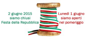 Facciamo la Festa alla RepubblicaIl 2 giugno 2015 facciamo festa alla nostra bella Repubblica, ma non facciamo ponte. Lunedì 1 giugno 2015 il negozio è aperto negli orari del pomeriggio h.15.30-19.30 Ti aspettiamo con i nuovi ...