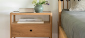 Con il suo cassetto, lo spazio aperto e le gambe leggermente affusolate, il comodino Spindle è il complemento perfetto per il letto della stessa linea. Prodotto della casa Ethnicraft (art.51245).Dimensioni ...
