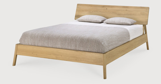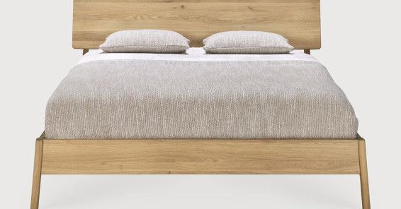 Letto matrimoniale di Ethnicraft con testiera a panchina e dalla linea aggraziata.