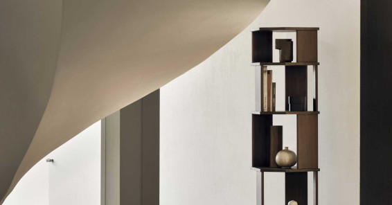 La libreria a colonna Stairs è una composizione progettata da Alain van Havre con un gioco unico di angoli e volumi.