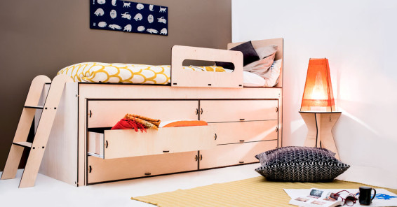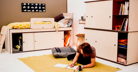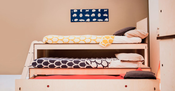 Scegli tra le diverse combinazioni salvaspazio quella che fa per te, due letti o un letto alto con sotto cassetti/ante.