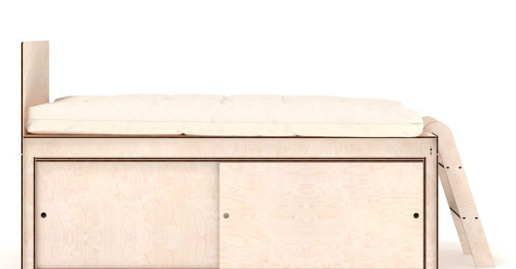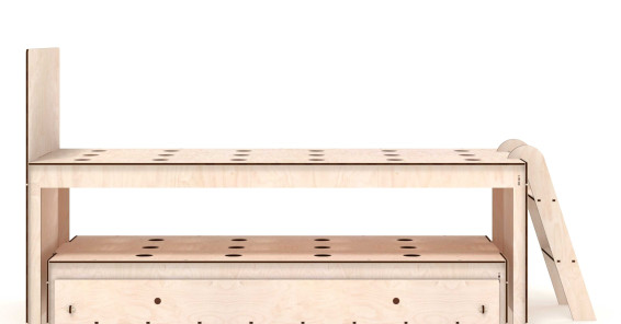 Lettino trasformabile in scrivania e divanetto in multistrato di betulla. La culla si ...