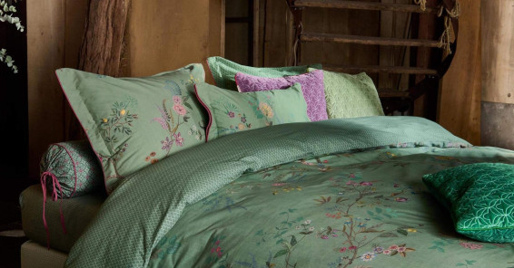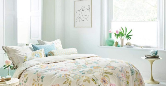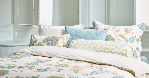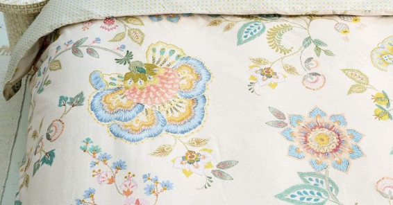 Lenzuola e copripiumini di ispirazione vintage con stampe digitali, in tessuto percalle di puro cotone.