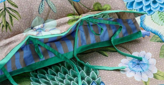 Le federe, rifinite con cordoncino, hanno la chiusura con laccetti.
