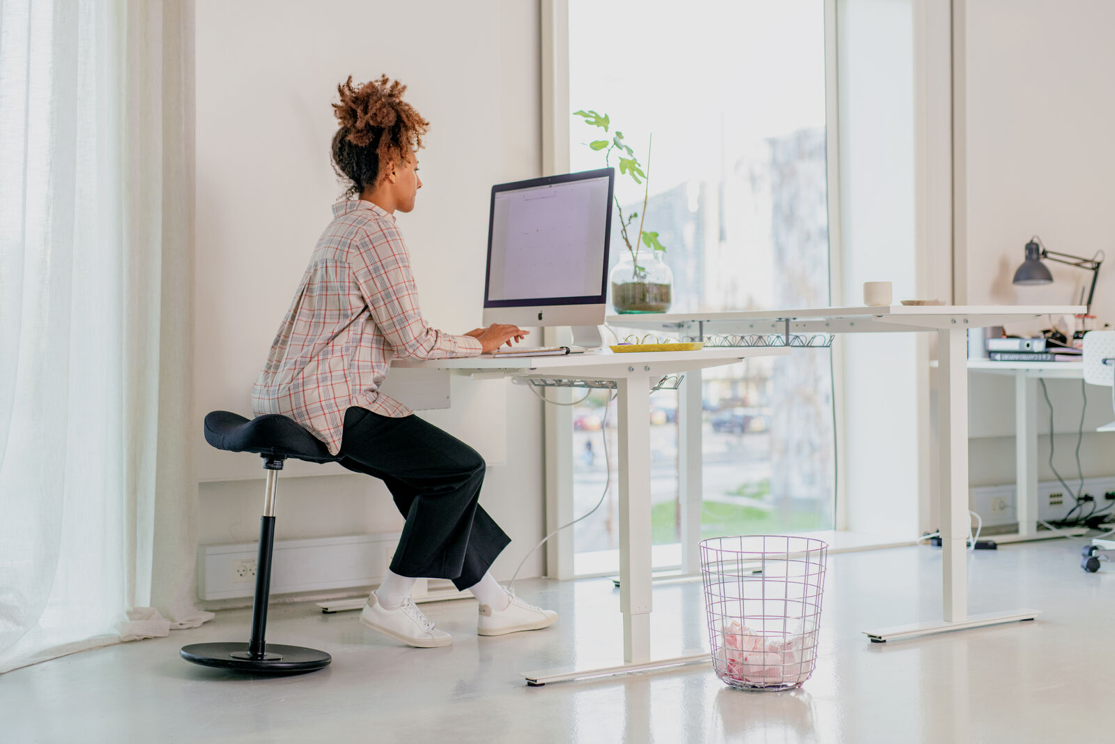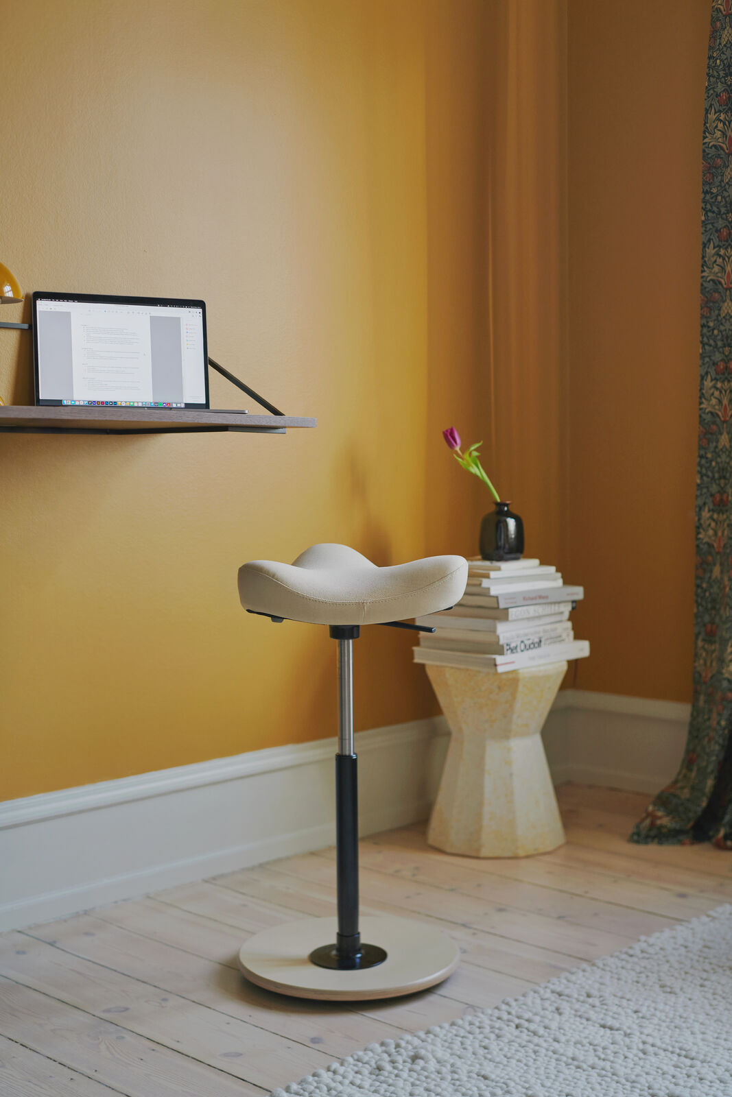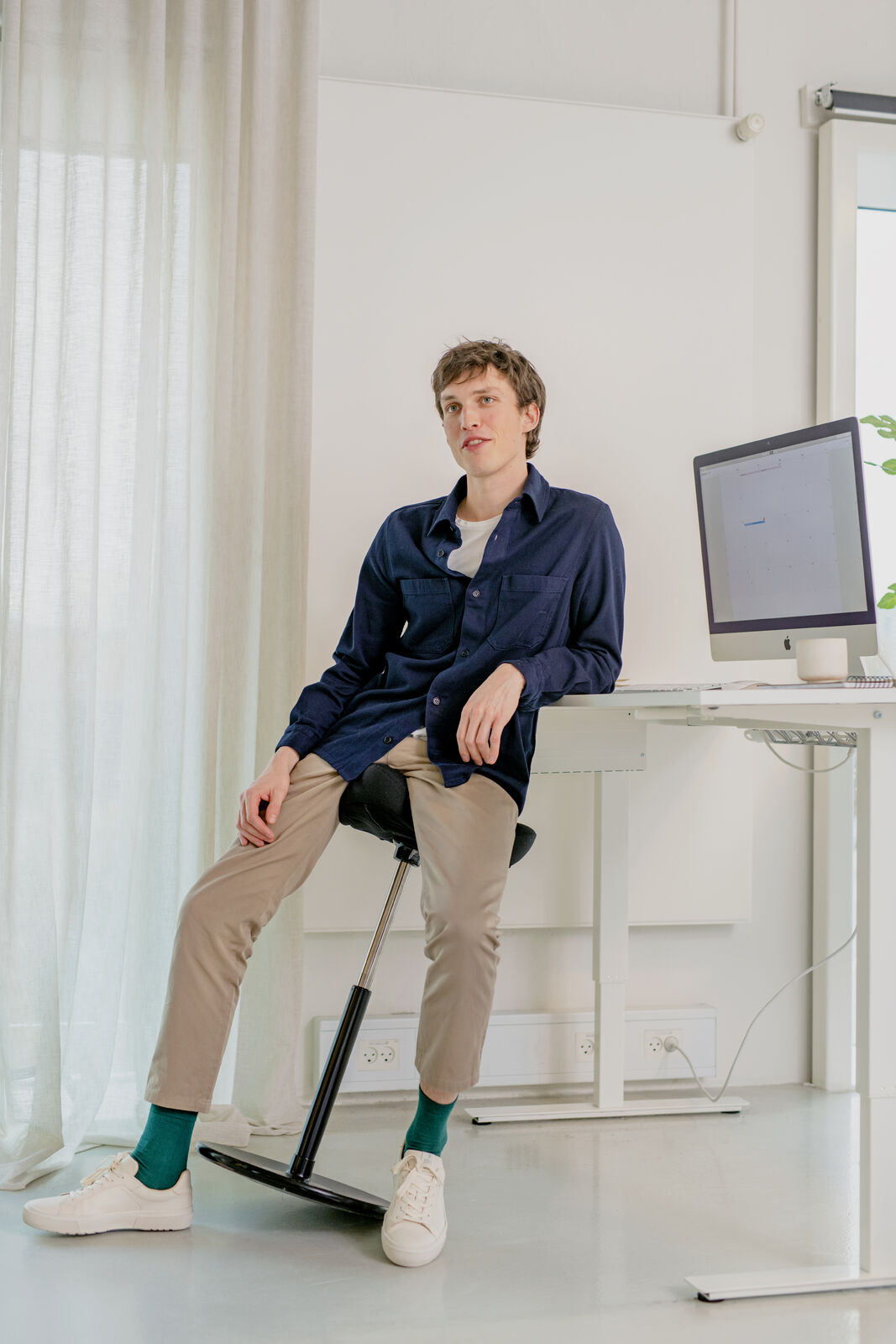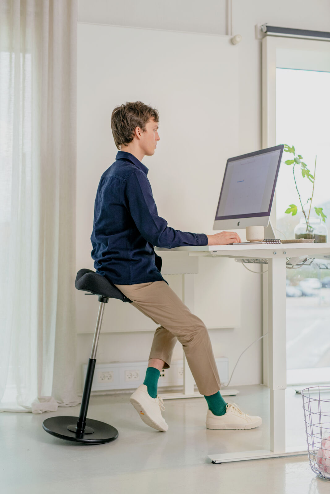 La seduta ideale per chi lavora in piedi o ad altezza fuori standard. La base basculante e il sedile regolabile seguono i movimenti del corpo ruotando sino a 360°. Il sedile a forma di sella impedisce di scivolare. Allevia la spina dorsale e il collo dalla pressione. Si respira con maggiore profondità, aumenta la concentrazione. Nella confezione è inclusa la protezione in gomma.