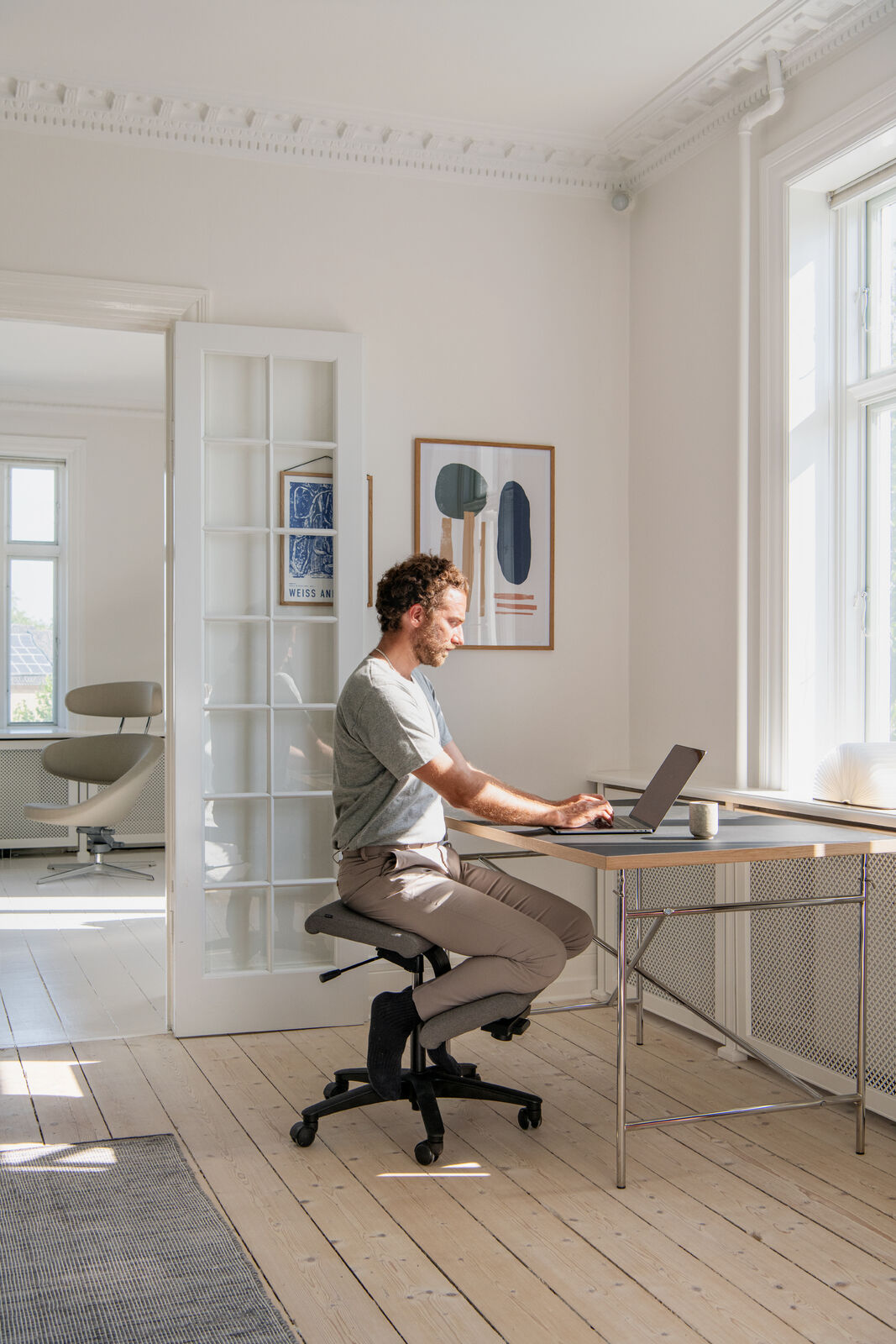 La seduta da lavoro con inclinazione ed altezza regolabili. Grazie alle ruote e alla base girevole consente veloci spostamenti in tutta comodità.